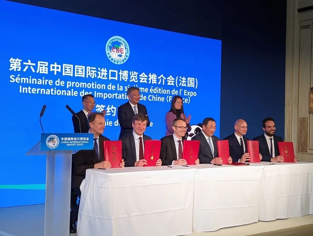 近日,由商務(wù)部部長王文濤帶隊(duì),在法國巴黎舉辦的第六屆中國國際進(jìn)口博覽會推介會上,法國高美艾博展覽集團(tuán)與一眾國際食飲企業(yè)代表高調(diào)出席,與法國農(nóng)業(yè)食品委員會、法國豬業(yè)聯(lián)盟等農(nóng)業(yè)食品機(jī)構(gòu)進(jìn)行了深入洽談,并最終與中國國際進(jìn)口博覽局共同簽約。