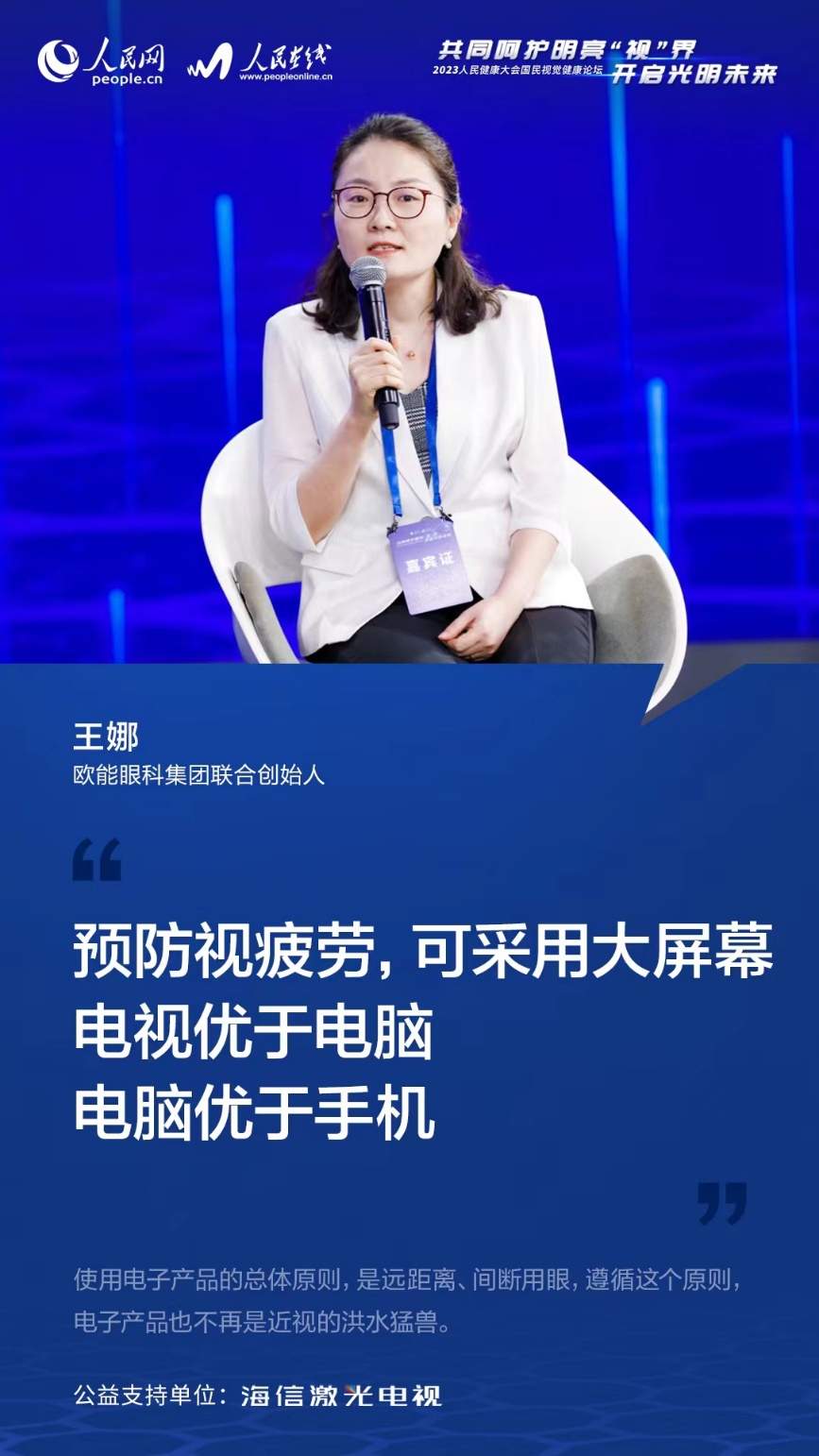 專家們還對青少年使用電子產(chǎn)品給出了具體建議。歐能眼科集團(tuán)聯(lián)合創(chuàng)始人、重慶市婦幼衛(wèi)生學(xué)會兒童心理行為與發(fā)展專委會視覺行為發(fā)育學(xué)組副組長王娜提到,使用電子產(chǎn)品的總體原則,是遠(yuǎn)距離、間斷用眼,遵循這個原則,電子產(chǎn)品也不再是近視的洪水猛獸。她建議道,“預(yù)防視疲勞,可采用大屏幕。電視優(yōu)于電腦,電腦優(yōu)于手機”。