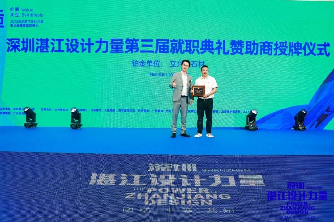 深圳湛江設(shè)計(jì)力量會(huì)長(zhǎng)黃后欽為鉑金單位立興隆石材授牌