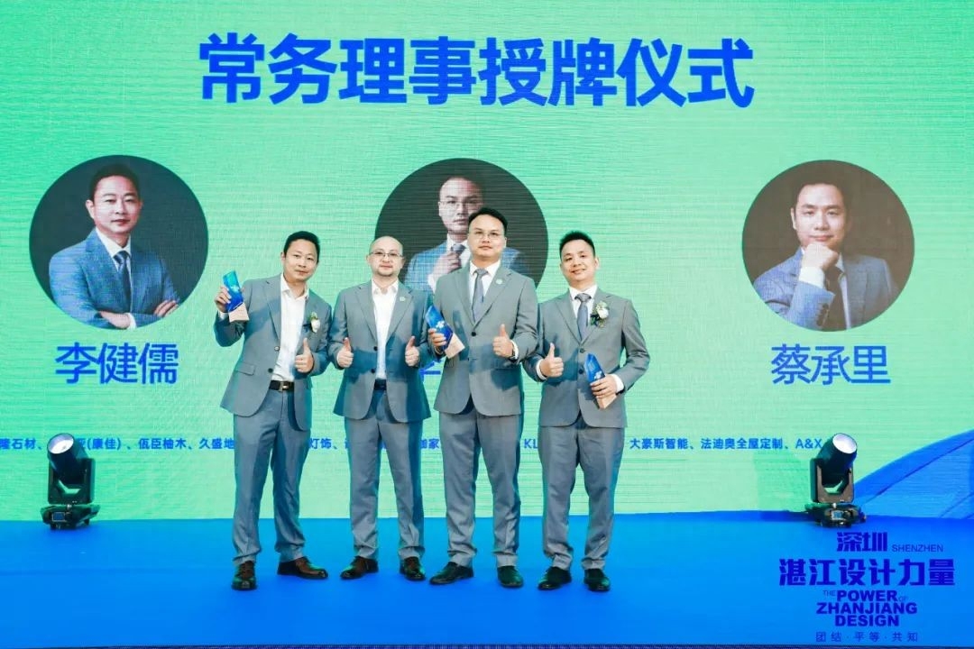 深圳湛江設(shè)計(jì)力量執(zhí)行會(huì)長(zhǎng)林國(guó)偉為常務(wù)理事李健儒、李上海和蔡承里授牌