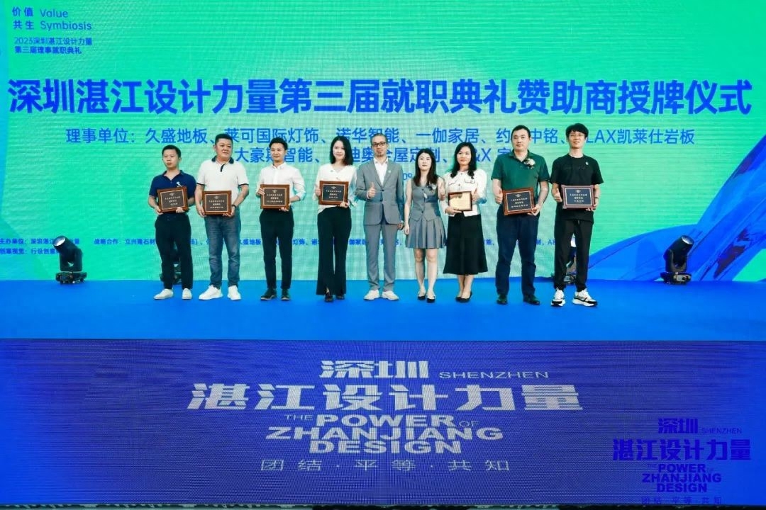 深圳湛江設(shè)計(jì)力量秘書(shū)長(zhǎng)葉小花和監(jiān)事長(zhǎng)黃龍立為理事單位授牌,久盛地板、萊可國(guó)際燈飾、諾華智能、一伽家居、約克中銘、KLAX 凱萊仕巖板、大豪斯智能、法迪奧全屋定制和A&X 家具授牌