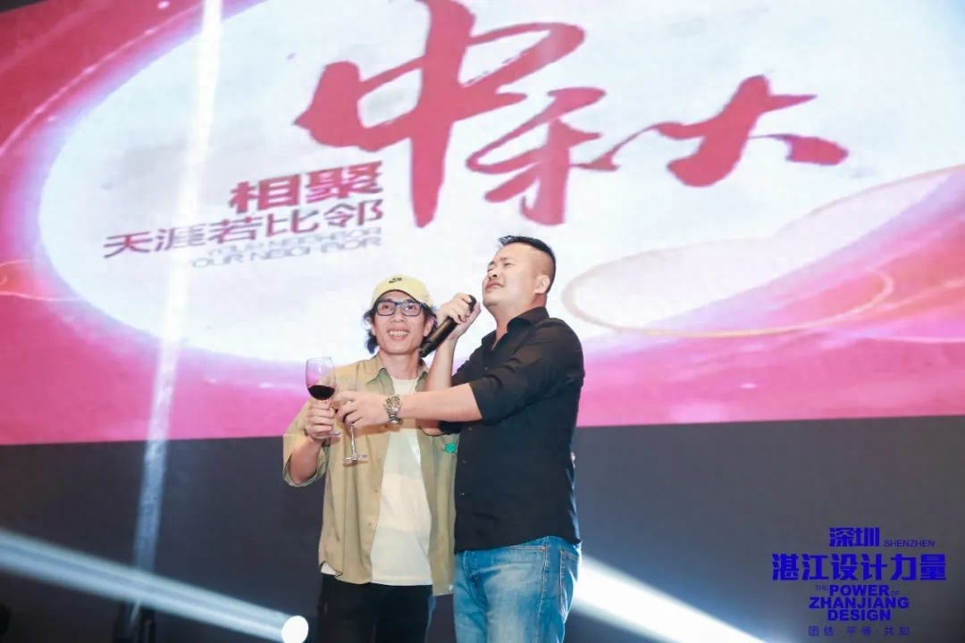 湛江設(shè)計(jì)力量總會(huì)常委與深圳執(zhí)行會(huì)長(zhǎng)上臺(tái)祝酒,恭賀今日,同祝未來(lái)!