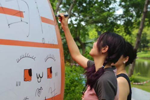 這是一場(chǎng)有陽(yáng)光、有音樂(lè)、有電影、有市集、有檸檬茶的派對(duì)。在場(chǎng)館入口處草坪上的“熱聲”大氣球上,長(zhǎng)出了“野生姜哥”“野生咕咕雞”,還有對(duì)新周刊的激情表白——愛(ài)意我們接收到了,貴刊辦到老,請(qǐng)您看到老。