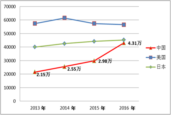 圖1 主要國家信息技術領域國際專利申請數(shù)比較