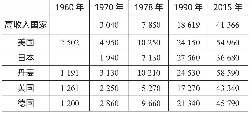 表1 發(fā)達(dá)國(guó)家人均GNI發(fā)展階段