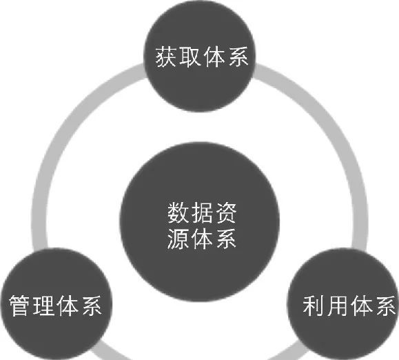 數(shù)據(jù)治理資源體系建設(shè)是數(shù)據(jù)時代實現(xiàn)政府現(xiàn)代化的重要基礎(chǔ)設(shè)施和關(guān)鍵任務(wù)。從治理的內(nèi)在需求出發(fā), 建立系統(tǒng)集中、標準規(guī)范、安全有序、運行高效的數(shù)據(jù)資源體系, 提升政府數(shù)據(jù)資源活化和管理能級, 為實現(xiàn)數(shù)據(jù)跨系統(tǒng)共享交換、創(chuàng)新應(yīng)用提供好底層邏輯框架和規(guī)則體系, 乃是結(jié)構(gòu)層建設(shè)的重中之重。任何信息積累的速度和質(zhì)量都是獲取能力、管理能力和利用能力之函數(shù)?;诖? 政府數(shù)據(jù)資源體系建設(shè)可以進一步分為政府數(shù)據(jù)獲取、政府數(shù)據(jù)資源管理和政府數(shù)據(jù)資源利用體系建設(shè) (見圖2) 。
