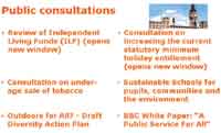 英國(guó)政府網(wǎng)站的公眾參與主要通過(guò)“公共咨詢”來(lái)實(shí)現(xiàn),如圖3所示。在網(wǎng)站組織形式上,它分為信息資源目錄導(dǎo)航區(qū),公眾咨詢主題目錄展示區(qū),幫助提示區(qū)??傮w來(lái)說(shuō),該欄目的設(shè)計(jì)有如下特點(diǎn):