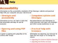 尤其在便利技術(shù)子主題中,網(wǎng)站設(shè)置了3個(gè)服務(wù)項(xiàng)目,特別為殘疾人士提供了極富人性化的服務(wù)幫助:更簡(jiǎn)便的使用電腦、便利的技術(shù)產(chǎn)品、英國(guó)在線中心。這些服務(wù)項(xiàng)目主要幫助殘疾人士選擇合適的硬件器材、軟件平臺(tái)。其中英國(guó)在線中心,不僅提供了大量的便利性技術(shù)產(chǎn)品,如為盲人提供上網(wǎng)的語(yǔ)音輔助器材,為身體殘疾人士提供特殊的鼠標(biāo)鍵盤(pán),同時(shí)通過(guò)最近的在線中心,用戶還可以獲得專(zhuān)門(mén)的服務(wù)人員的個(gè)人輔導(dǎo),順利地從政府網(wǎng)站獲取資訊和服務(wù)。