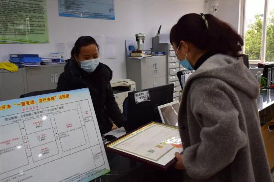 圖為張桂英通過預(yù)約后,在半小時(shí)內(nèi)辦好個(gè)體工商營業(yè)執(zhí)照