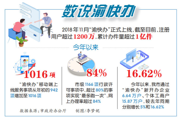 據(jù)介紹,自2018年11月正式上線以來,“渝快辦”已取得服務(wù)供給更豐富、線上服務(wù)更完善、線下服務(wù)更通暢、渠道多元更便捷等多項(xiàng)成效。