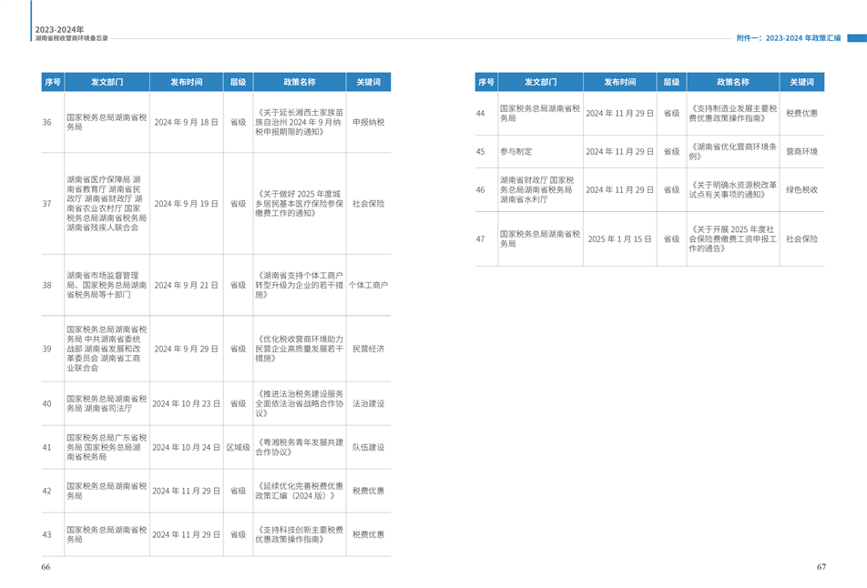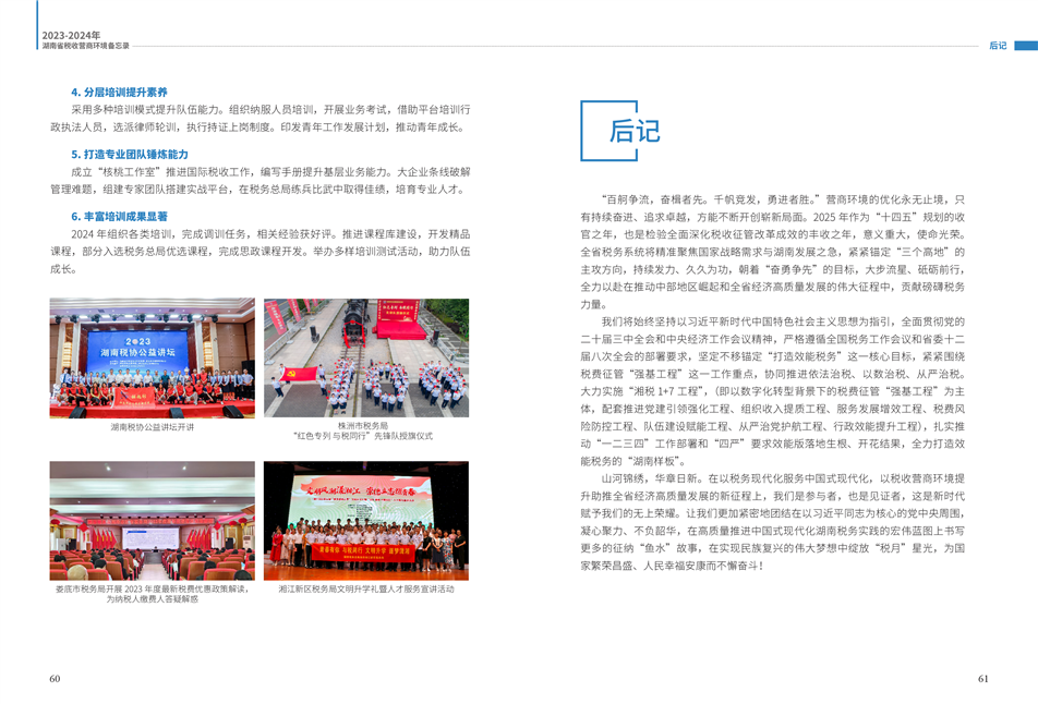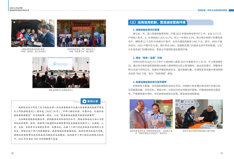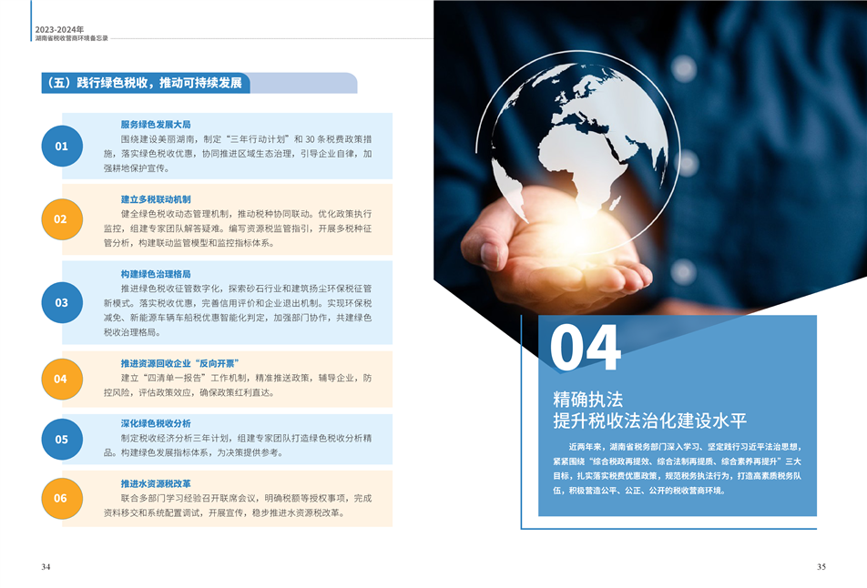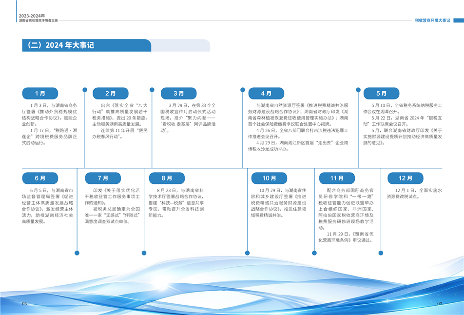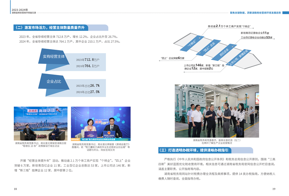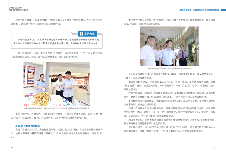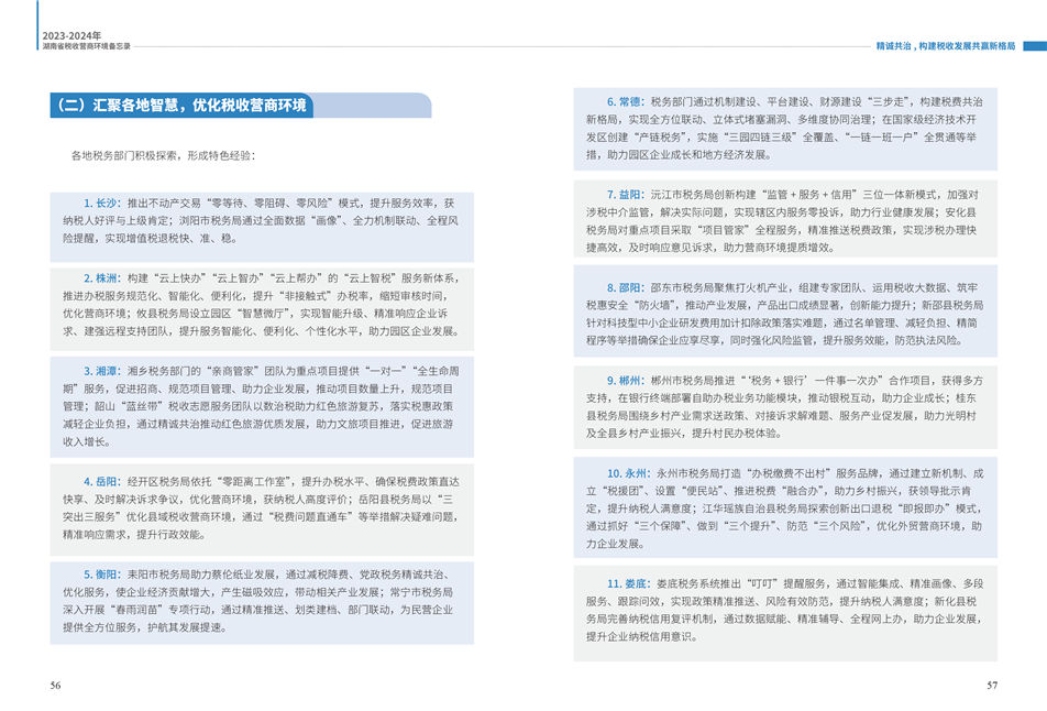 為更好展示湖南稅務(wù)部門在優(yōu)化營(yíng)商環(huán)境工作中的創(chuàng)新舉措和改革成效,湖南省稅務(wù)局組織編寫了《2023—2024年湖南省稅收營(yíng)商環(huán)境備忘錄》。全書共分為9個(gè)篇章,以“四個(gè)聚焦”鋪展呈現(xiàn):