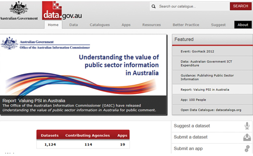 澳大利亞政府?dāng)?shù)據(jù)網(wǎng)站(Data.gov.au)為查找、訪問和重用來自澳大利亞政府、州政府和領(lǐng)地政府的公共數(shù)據(jù)集提供了一個簡單的方法。Data.gov.au網(wǎng)站是依據(jù)澳大利亞政府的《開放政府申明》,應(yīng)政府2.0工作組的要求而建立的,由澳大利亞金融和放松管制部負(fù)責(zé)它的發(fā)展和持續(xù)運營。