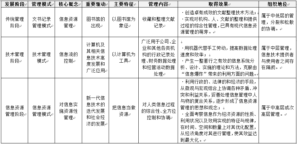 表1 信息資源管理的發(fā)展歷程