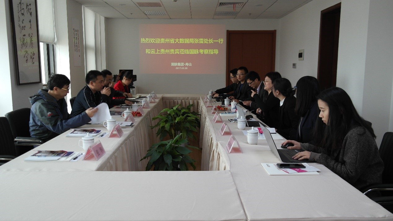 2017年3月28日,貴州省政府大數(shù)據(jù)局?jǐn)?shù)據(jù)資源管理與安全處處長(zhǎng)張雷一行蒞臨國(guó)脈集團(tuán)(舟山)考察指導(dǎo),并與國(guó)脈集團(tuán)洽談戰(zhàn)略合作意向。