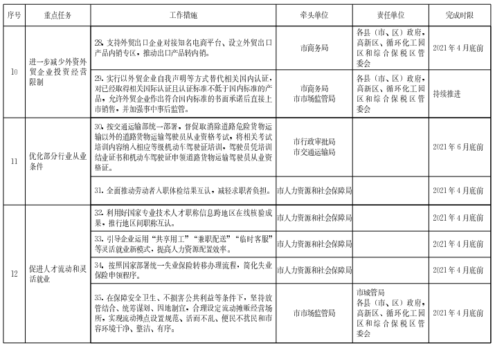 ?。ㄎ澹┻M(jìn)一步降低市場(chǎng)準(zhǔn)入門檻。做好《市場(chǎng)準(zhǔn)入負(fù)面清單(2020年版)》實(shí)施工作,嚴(yán)格落實(shí)“一張清單”管理模式,確?!耙粏伪M列、單外無(wú)單”。圍繞工程建設(shè)、教育、醫(yī)療、體育等領(lǐng)域開(kāi)展集中清理,清除市有關(guān)部門和各市在市場(chǎng)準(zhǔn)入方面對(duì)企業(yè)資質(zhì)、資金、股比、人員、場(chǎng)所等設(shè)置的不合理?xiàng)l件,列出臺(tái)賬并逐項(xiàng)明確解決措施、責(zé)任主體和完成時(shí)限。加強(qiáng)診所設(shè)置執(zhí)業(yè)管理,在自貿(mào)試驗(yàn)區(qū)對(duì)診所設(shè)置、診所執(zhí)業(yè)實(shí)行備案管理試點(diǎn),條件成熟后在全市推廣。