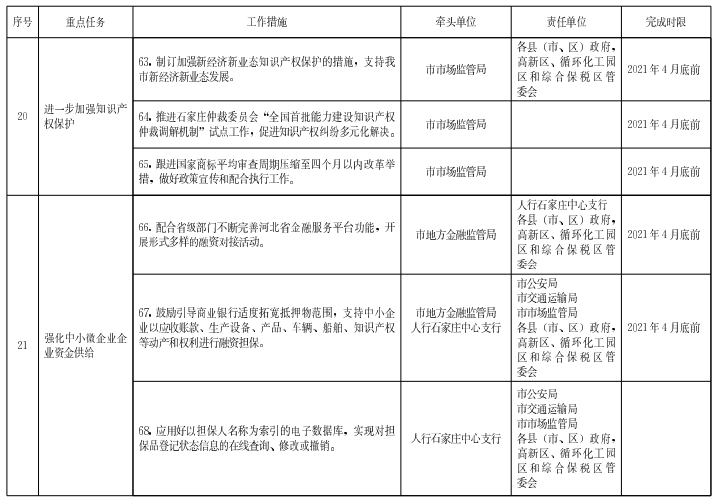 (二十)進(jìn)一步加強(qiáng)知識(shí)產(chǎn)權(quán)保護(hù)。制訂加強(qiáng)新經(jīng)濟(jì)新業(yè)態(tài)知識(shí)產(chǎn)權(quán)保護(hù)的措施,支持我市新經(jīng)濟(jì)新業(yè)態(tài)發(fā)展。推進(jìn)石家莊仲裁委員會(huì)“全國(guó)首批能力建設(shè)知識(shí)產(chǎn)權(quán)仲裁調(diào)解機(jī)制"試點(diǎn)工作,促進(jìn)知識(shí)產(chǎn)權(quán)糾紛多元化解決。跟進(jìn)國(guó)家商標(biāo)平均審查周期壓縮至四個(gè)月以內(nèi)改革舉措,做好政策宣傳和配合執(zhí)行工作。
