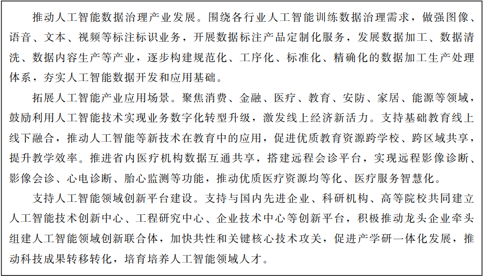 推動國家新一代人工智能創(chuàng)新發(fā)展試驗區(qū)落地甘肅,規(guī)劃建設(shè)一批人工智能超算中心,打造人工智能數(shù)據(jù)資源、計算能力、標(biāo)準(zhǔn)體系、測試評估等服務(wù)平臺。依托大數(shù)據(jù)中心集群,打造數(shù)字智能產(chǎn)業(yè)鏈。加快引進(jìn)國內(nèi)外人工智能領(lǐng)軍企業(yè),推進(jìn)人工智能在民生領(lǐng)域的融合應(yīng)用,促進(jìn)技術(shù)集成和商業(yè)模式創(chuàng)新。整合省內(nèi)高校人才資源,聯(lián)合國內(nèi)外頂級人工智能機構(gòu),打造一流的人工智能超算產(chǎn)業(yè)基地。