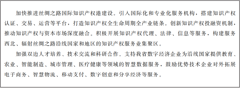 ——開放合作。立足“一帶一路”建設(shè)區(qū)位優(yōu)勢,強化與沿線國家的開放合作,加快“數(shù)字絲綢之路”建設(shè),提高我省數(shù)字經(jīng)濟創(chuàng)新力、引領(lǐng)力和輻射力。