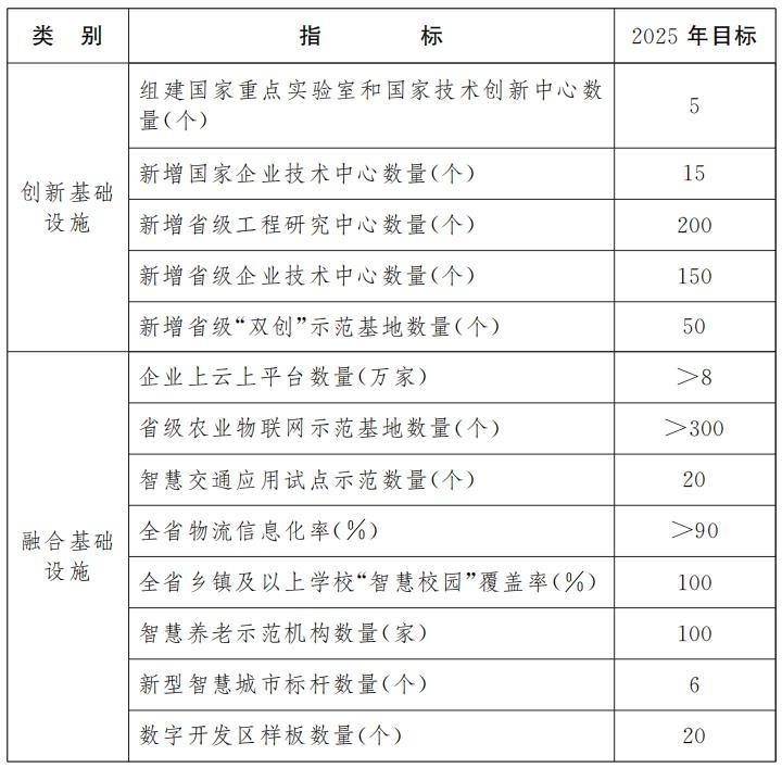 到2025年,基本建成高速泛在、智能敏捷、綜合集成、安全可信的新型基礎(chǔ)設(shè)施體系,“感—傳—存—算—用”綜合數(shù)字能力顯著增強(qiáng),經(jīng)濟(jì)社會(huì)各領(lǐng)域數(shù)字化、網(wǎng)絡(luò)化、智能化發(fā)展水平大幅提升,創(chuàng)新基礎(chǔ)設(shè)施水平穩(wěn)步增強(qiáng),有力支撐全省高質(zhì)量跨越式發(fā)展。