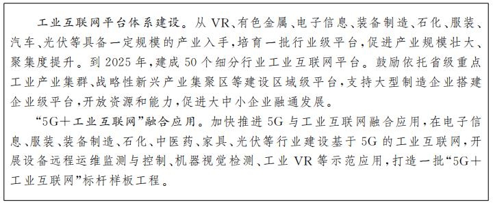 推進(jìn)工業(yè)互聯(lián)網(wǎng)建設(shè)。加快建設(shè)覆蓋全省的高質(zhì)量外網(wǎng),推動(dòng)工業(yè)企業(yè)、工業(yè)互聯(lián)網(wǎng)平臺(tái)、標(biāo)識(shí)解析節(jié)點(diǎn)、安全設(shè)施等接入。鼓勵(lì)工業(yè)企業(yè)利用5G、工業(yè)無(wú)源光網(wǎng)絡(luò)、工業(yè)以太網(wǎng)、工業(yè)無(wú)線網(wǎng)等先進(jìn)適用技術(shù)對(duì)內(nèi)網(wǎng)升級(jí)改造,探索在既有系統(tǒng)上疊加部署新網(wǎng)絡(luò)、新系統(tǒng),推動(dòng)信息技術(shù)(IT)網(wǎng)絡(luò)與運(yùn)營(yíng)技術(shù)(OT)網(wǎng)絡(luò)融合。加快標(biāo)識(shí)解析體系建設(shè),在服裝、電子信息、鋰電新材料、有色金屬、陶瓷、家具、中醫(yī)藥等領(lǐng)域,爭(zhēng)取建設(shè)運(yùn)營(yíng)一批工業(yè)互聯(lián)網(wǎng)標(biāo)識(shí)解析二級(jí)節(jié)點(diǎn)。加快工業(yè)互聯(lián)網(wǎng)公共遞歸解析節(jié)點(diǎn)建設(shè),保障工業(yè)互聯(lián)網(wǎng)解析服務(wù)性能。培育一批企業(yè)級(jí)、行業(yè)級(jí)、區(qū)域級(jí)工業(yè)互聯(lián)網(wǎng)平臺(tái),形成各有側(cè)重、協(xié)同集聚發(fā)展的工業(yè)互聯(lián)網(wǎng)平臺(tái)體系。加大工業(yè)場(chǎng)景應(yīng)用開(kāi)發(fā)和應(yīng)用,推動(dòng)中小微企業(yè)數(shù)字化工具普及,形成建平臺(tái)和用平臺(tái)雙向迭代、互促共進(jìn)的良好生態(tài)。