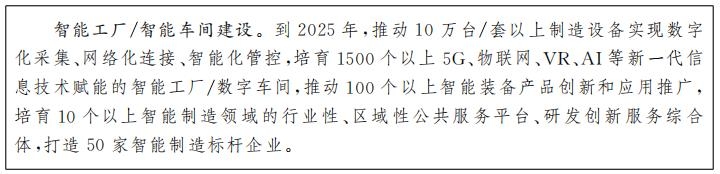 智能制造基礎(chǔ)設(shè)施建設(shè)。持續(xù)推進(jìn)智能制造“萬(wàn)千百十”工程升級(jí)版,在需求迫切且基礎(chǔ)條件好的地區(qū)、行業(yè),開(kāi)展智能制造新模式試點(diǎn)示范,打造一批智能制造標(biāo)桿企業(yè),培育一批智能制造系統(tǒng)解決方案提供商和服務(wù)平臺(tái)。推進(jìn)有色金屬、電子信息、汽車、航空、綠色食品等省內(nèi)重點(diǎn)產(chǎn)業(yè)的裝備和系統(tǒng)數(shù)字化、智能化改造,實(shí)現(xiàn)制造業(yè)全流程、全要素?cái)?shù)據(jù)實(shí)時(shí)采集、設(shè)備互聯(lián)、協(xié)同優(yōu)化、在線監(jiān)測(cè)和分析決策。推進(jìn)智能工廠、數(shù)字車間建設(shè),推進(jìn)生產(chǎn)流程關(guān)鍵工藝工序的智能優(yōu)化,開(kāi)展基于標(biāo)識(shí)解析的跨環(huán)節(jié)物料追溯應(yīng)用,開(kāi)展基于機(jī)器視覺(jué)的在線質(zhì)量檢測(cè)。支持企業(yè)運(yùn)用智能控制系統(tǒng)、工業(yè)軟件、能源管控軟件、故障診斷軟件等系統(tǒng)和通信技術(shù)對(duì)現(xiàn)有裝備進(jìn)行適應(yīng)性改造,提升企業(yè)裝備智能化水平。深入實(shí)施“上云用數(shù)賦智”,推動(dòng)企業(yè)的協(xié)同辦公、研發(fā)設(shè)計(jì)、生產(chǎn)控制和資源配置等系統(tǒng)向云端遷移。