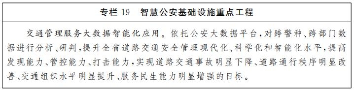 智慧公安基礎(chǔ)設(shè)施建設(shè)。深化公安大數(shù)據(jù)智能化建設(shè),升級(jí)完善省市兩級(jí)公安大數(shù)據(jù)平臺(tái),實(shí)現(xiàn)智能化的情報(bào)分析研判、預(yù)警預(yù)測(cè)預(yù)防、精準(zhǔn)管控打擊、精細(xì)管理服務(wù)。推進(jìn)智慧交管建設(shè),強(qiáng)化交通管理大數(shù)據(jù)應(yīng)用,通過(guò)科學(xué)、精準(zhǔn)預(yù)判安全風(fēng)險(xiǎn),提升道路安全防控、城市交通治理、交通違法管控、公安交管服務(wù)等能力。完善交管各類平臺(tái)系統(tǒng),織密道路交通感知網(wǎng)絡(luò),構(gòu)建以智能感知、智能計(jì)算、智能認(rèn)知、智能應(yīng)用為支撐的智慧交通管理體系。加強(qiáng)公安技偵平臺(tái)系統(tǒng)建設(shè)和專用裝備建設(shè),深入研究5G、物聯(lián)網(wǎng)、區(qū)塊鏈、AI等新技術(shù)新應(yīng)用,有效提升涉網(wǎng)犯罪偵查打擊、電子數(shù)據(jù)勘查取證和技術(shù)對(duì)抗等能力。持續(xù)推進(jìn)“雪亮工程”建設(shè),推動(dòng)公共安全視頻監(jiān)控建設(shè)和聯(lián)網(wǎng)應(yīng)用,提高視頻監(jiān)控點(diǎn)位覆蓋率和高清率,全面提升社會(huì)治安防控水平和城市社會(huì)治理現(xiàn)代化能力。