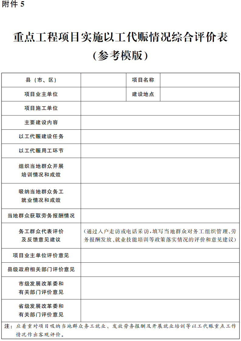 5.重點工程項目實施以工代賑情況綜合評價表(參考模版)