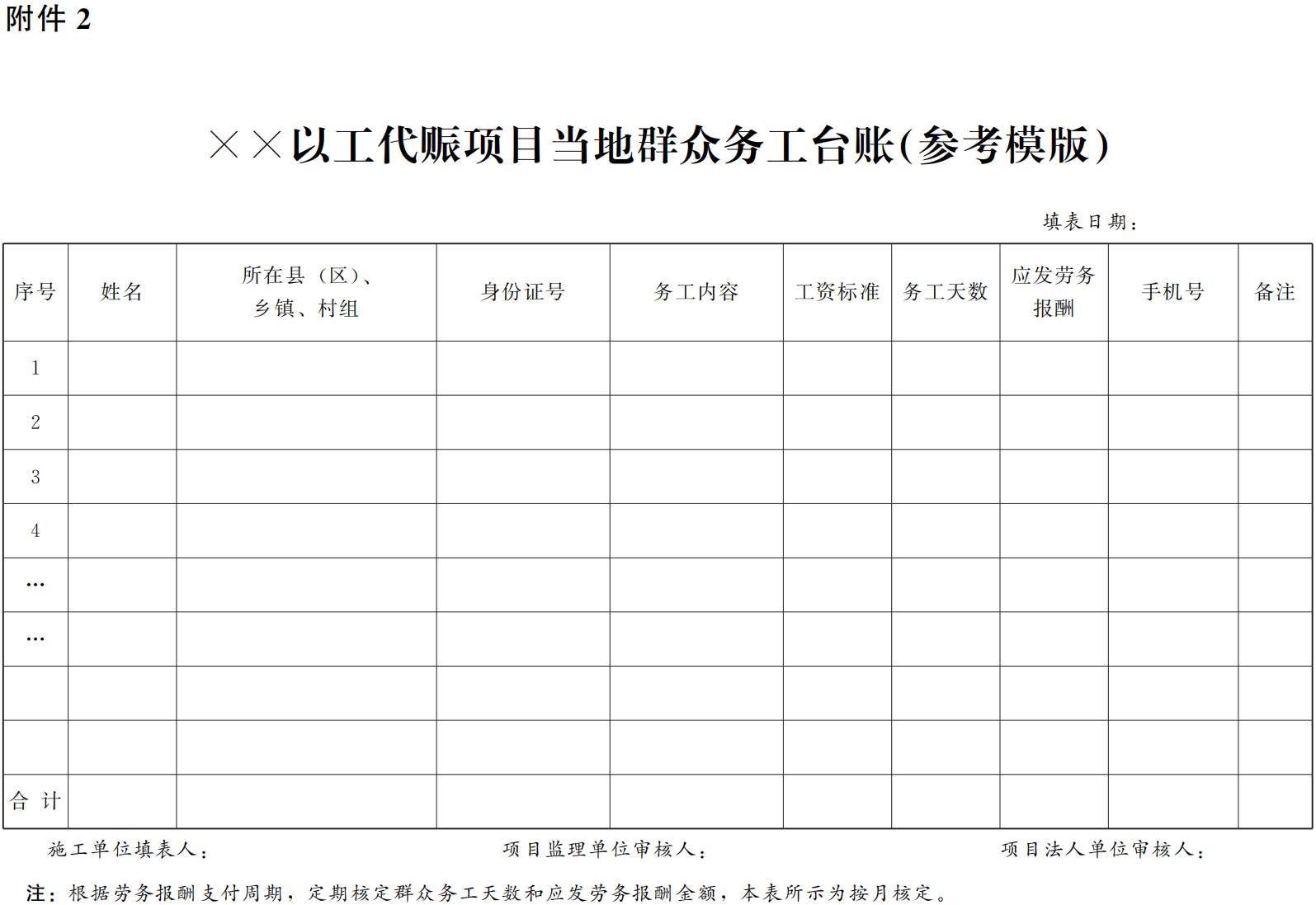 2.××以工代賑項目當?shù)厝罕妱展づ_賬(參考模版)