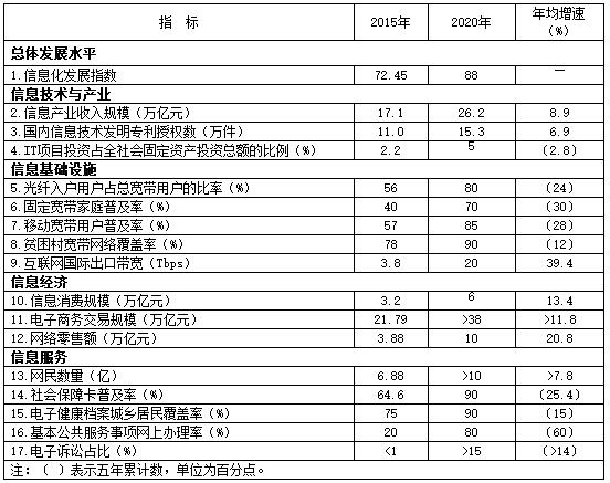 信息經(jīng)濟(jì)全面發(fā)展。信息經(jīng)濟(jì)新產(chǎn)業(yè)、新業(yè)態(tài)不斷成長,信息消費(fèi)規(guī)模達(dá)到6萬億元,電子商務(wù)交易規(guī)模超過38萬億元,信息化和工業(yè)化融合發(fā)展水平進(jìn)一步提高,重點(diǎn)行業(yè)數(shù)字化、網(wǎng)絡(luò)化、智能化取得明顯進(jìn)展,網(wǎng)絡(luò)化協(xié)同創(chuàng)新體系全面形成。打破信息壁壘和孤島,實(shí)現(xiàn)各部門業(yè)務(wù)系統(tǒng)互聯(lián)互通和信息跨部門跨層級(jí)共享共用,公共數(shù)據(jù)資源開放共享體系基本建立,面向企業(yè)和公民的一體化公共服務(wù)體系基本建成,電子政務(wù)推動(dòng)公共服務(wù)更加便捷均等。電信普遍服務(wù)補(bǔ)償機(jī)制進(jìn)一步完善,網(wǎng)絡(luò)扶貧成效明顯,寬帶網(wǎng)絡(luò)覆蓋90%以上的貧困村。