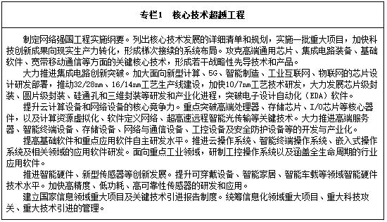 打造自主先進(jìn)的技術(shù)體系。制定網(wǎng)絡(luò)強(qiáng)國戰(zhàn)略工程實(shí)施綱要,以系統(tǒng)思維構(gòu)建新一代網(wǎng)絡(luò)技術(shù)體系、云計(jì)算體系、安全技術(shù)體系以及高端制造裝備技術(shù)體系,協(xié)同攻關(guān)高端芯片、核心器件、光通信器件、操作系統(tǒng)、數(shù)據(jù)庫系統(tǒng)、關(guān)鍵網(wǎng)絡(luò)設(shè)備、高端服務(wù)器、安全防護(hù)產(chǎn)品等關(guān)鍵軟硬件設(shè)備,建設(shè)戰(zhàn)略清晰、技術(shù)先進(jìn)、產(chǎn)業(yè)領(lǐng)先、安全可靠的網(wǎng)絡(luò)強(qiáng)國。統(tǒng)籌經(jīng)濟(jì)、政治、文化、社會(huì)、生態(tài)文明等領(lǐng)域網(wǎng)絡(luò)安全和信息化發(fā)展,增強(qiáng)自主創(chuàng)新能力。