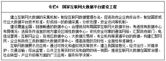 加強(qiáng)數(shù)據(jù)資源規(guī)劃建設(shè)。加快推進(jìn)政務(wù)數(shù)據(jù)資源、社會(huì)數(shù)據(jù)資源、互聯(lián)網(wǎng)數(shù)據(jù)資源建設(shè)。全面推進(jìn)重點(diǎn)領(lǐng)域大數(shù)據(jù)高效采集、有效整合、安全利用,深化政府?dāng)?shù)據(jù)和社會(huì)數(shù)據(jù)關(guān)聯(lián)分析、融合利用,提高宏觀調(diào)控、市場(chǎng)監(jiān)管、社會(huì)治理和公共服務(wù)精準(zhǔn)性和有效性。建立國家關(guān)鍵數(shù)據(jù)資源目錄體系,統(tǒng)籌布局區(qū)域、行業(yè)數(shù)據(jù)中心,建立國家互聯(lián)網(wǎng)大數(shù)據(jù)平臺(tái),構(gòu)建統(tǒng)一高效、互聯(lián)互通、安全可靠的國家數(shù)據(jù)資源體系。探索推進(jìn)離岸數(shù)據(jù)中心建設(shè),建立完善全球互聯(lián)網(wǎng)信息資源庫。完善電子文件管理服務(wù)設(shè)施。加強(qiáng)哲學(xué)社會(huì)科學(xué)圖書文獻(xiàn)、網(wǎng)絡(luò)、數(shù)據(jù)庫等基礎(chǔ)設(shè)施和信息化建設(shè),提升國家哲學(xué)社會(huì)科學(xué)文獻(xiàn)在線共享和服務(wù)能力。