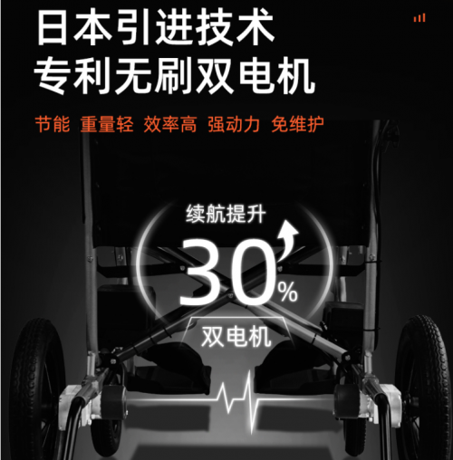 該款電動鈴輪椅經(jīng)過全新優(yōu)化的車架和新的電池控制器材料的使用,尤其是日本超輕電機(jī)技術(shù)的使用,大大降低了整臺輪椅的重量。同時(shí)保證了輪椅應(yīng)有的車身強(qiáng)度。