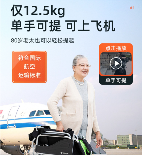 為了適應(yīng)電動輪椅輕型化和外出旅行的需要。互邦公司在2023年底推出超輕電動輪椅,僅重12.5公斤。