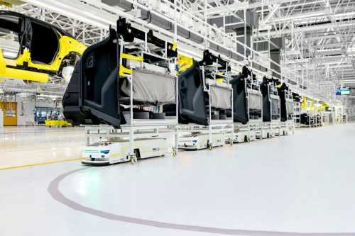 在總裝車間,配備大量高度自動(dòng)化和智能化設(shè)備,人機(jī)協(xié)作締造高質(zhì)量產(chǎn)品,保證Eletre出廠前的品質(zhì)一致性。自動(dòng)搬運(yùn)機(jī)器人AGV的運(yùn)用,極大提高分揀速度和準(zhǔn)確性,降低因人工操作導(dǎo)致的誤差;玻璃自動(dòng)涂膠設(shè)備,3D膠型檢測(cè)、機(jī)器人自動(dòng)涂膠、3D視覺引導(dǎo)裝配等設(shè)備,將智能制造融入每一個(gè)環(huán)節(jié),裝配后零部件貼合度和細(xì)節(jié)處理更好。