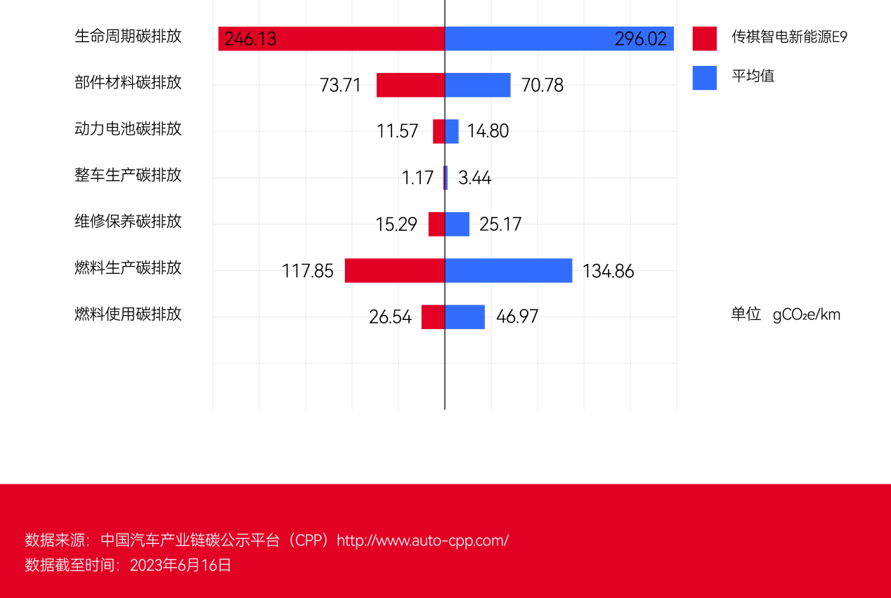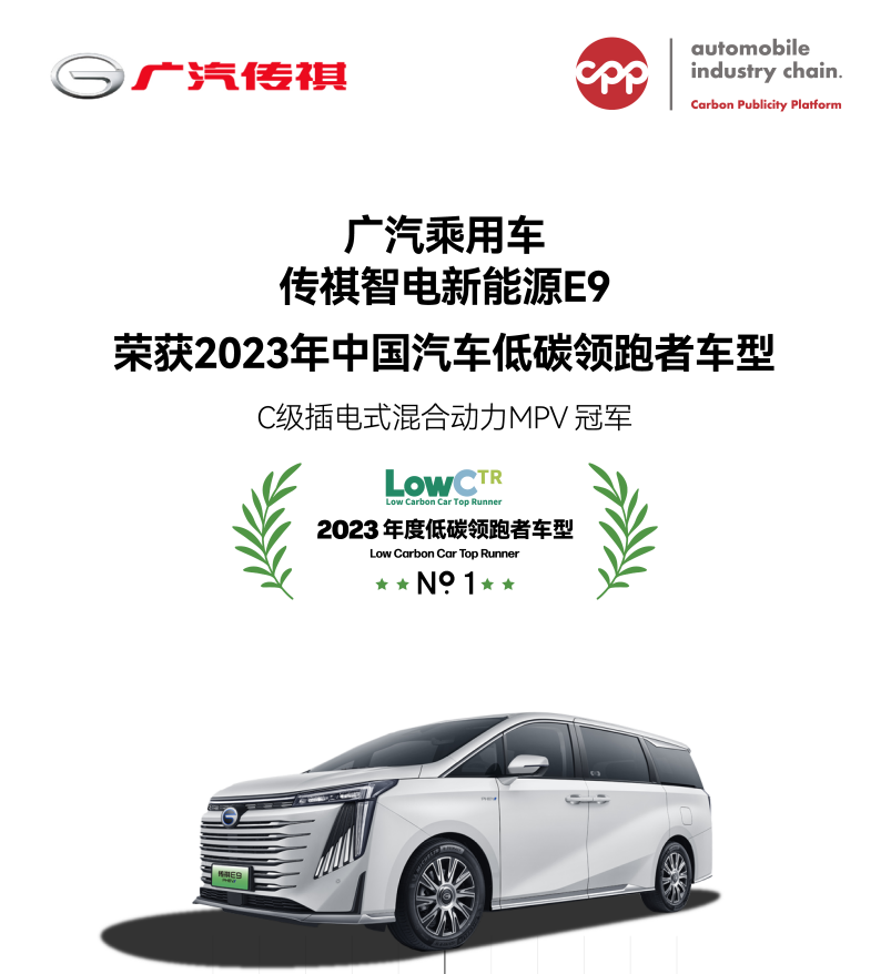 6月19日,由中汽碳(北京)數(shù)字技術(shù)有限公司舉辦的“2023年汽車工業(yè)節(jié)能與綠色發(fā)展評價(jià)中心年度成果分享會”在北京成功召開,并基于CPP平臺公布了首批近1400款車型碳足跡數(shù)據(jù),其中,傳祺智電新能源E9,以同級最低、且低于行業(yè)平均水平16.9%碳排放水平,榮膺“C級插電式混合動力MPV冠軍”,榮獲“2023中國汽車低碳領(lǐng) 跑者車型”。