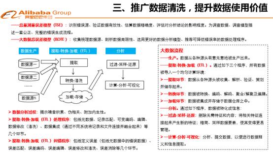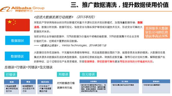 第三個,要進(jìn)行數(shù)據(jù)清洗,提供數(shù)據(jù)使用的價值。在大多應(yīng)用場景中,人們收集的數(shù)據(jù)是一些混雜的數(shù)據(jù),真數(shù)據(jù)、假數(shù)據(jù)、真實數(shù)據(jù)、錯誤數(shù)據(jù)混雜的情況下,這些數(shù)據(jù)在進(jìn)入正式流通渠道之前,不對它清洗,對數(shù)據(jù)中的重復(fù)性要進(jìn)行消重,數(shù)據(jù)錯誤信息不進(jìn)行糾錯,那么數(shù)據(jù)的價值沒法得到體現(xiàn)。對數(shù)據(jù)進(jìn)行清洗,加強數(shù)據(jù)凈化相關(guān)立法,推動相關(guān)第三方機(jī)構(gòu)建設(shè),使得一批行業(yè)從業(yè)人員能夠投身數(shù)據(jù)清洗工作,為數(shù)據(jù)提煉貢獻(xiàn)一份力量,讓行業(yè)數(shù)據(jù)真正展現(xiàn)出價值。