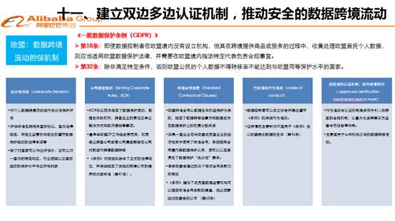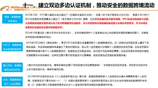 最后給大家拋出一個問題,要引入建立雙邊多邊認(rèn)證機(jī)制,推動安全數(shù)據(jù)跨境流動。數(shù)據(jù)跨境流動是當(dāng)前討論最熱的、最廣泛的話題,在這里不多說。國際上看,數(shù)據(jù)跨境流動主要有三種機(jī)制——用戶本人同意模式、控制人擔(dān)保模式和雙邊認(rèn)證模式,世界各國大體上通過這三種模式來安排本國與他國之間的數(shù)據(jù)跨境合理流動。這些模式為我國處理數(shù)據(jù)法律問題提供了可資參照的模型和原則,這些命題的提出,對完善我國數(shù)據(jù)政策法律環(huán)境和制度建設(shè),無疑具有較好的參考作用。