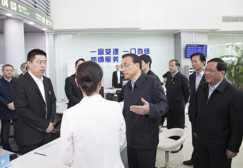 李克強(qiáng)總理4月10日考察中國(guó)(上海)自由貿(mào)易試驗(yàn)區(qū)張江片區(qū)企業(yè)服務(wù)中心。當(dāng)?shù)刎?fù)責(zé)人特意向總理匯報(bào)自貿(mào)區(qū)“一網(wǎng)通辦”等政務(wù)服務(wù)最新進(jìn)展情況?!耙痪W(wǎng)通辦”是李克強(qiáng)今年在總理記者會(huì)上提出的“放管服”改革“六個(gè)一”之一。