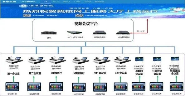 針對(duì)濟(jì)寧醫(yī)學(xué)院現(xiàn)有會(huì)議室的基本情況,華為智能協(xié)作聯(lián)合華為合作伙伴南京南方電訊有限公司睿景統(tǒng)一協(xié)作管理平臺(tái),為濟(jì)寧醫(yī)學(xué)院打造了易管易控、超清智能的遠(yuǎn)程協(xié)作溝通智慧平臺(tái)。會(huì)議室視訊設(shè)備采用華為分體式終端BOX600和企業(yè)智慧屏IdeaHub,部分會(huì)議室安裝LED大屏、建設(shè)會(huì)議信息發(fā)布及指引系統(tǒng)、建設(shè)全新的視頻會(huì)議服務(wù)端和終端及相關(guān)音視頻設(shè)備、建設(shè)并對(duì)接山東省教育廳視頻會(huì)議系統(tǒng)等。本次建設(shè)和升級(jí)內(nèi)容包括太白湖校區(qū)第 一會(huì)議室、第二會(huì)議室、圖文信息樓5樓報(bào)告廳、教學(xué)樓6樓報(bào)告廳,日照校區(qū)辦公樓0911會(huì)議室和0921會(huì)議室,任城校區(qū)會(huì)議室,高教園會(huì)議室,附屬醫(yī)院會(huì)議室,共計(jì)9間會(huì)議室及報(bào)告廳。