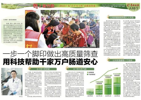 康立明生物為廣東省及全國多個城市的區(qū)、縣、鎮(zhèn)開展的腸道健康篩查項目提供了有力支持,并取得了優(yōu)異的篩查效果。這些項目讓居民在家門口就能獲得高質(zhì)量的腸癌篩查,提前發(fā)現(xiàn)了上千例早期腸癌和癌前病變,不僅實現(xiàn)了腸癌的早診早治,還提高了當(dāng)?shù)鼐用駥δc癌的認識和重視程度,獲得了良好的口碑和贊譽。